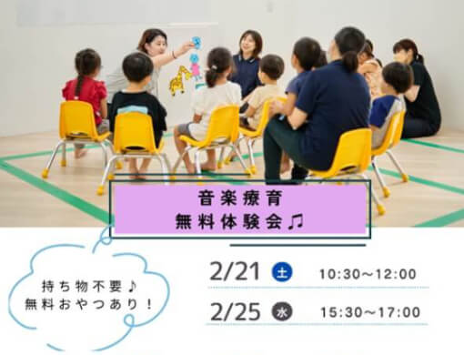 | 2歳~6歳頃(利用者:年少~小学1年生) | 音楽療育型教室で幼児期に必要な言語や社会性の習得 |